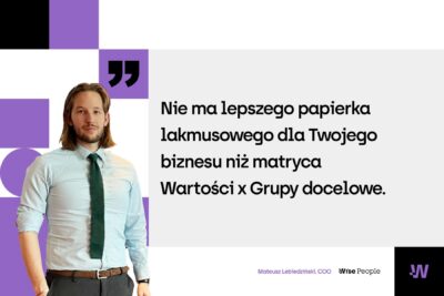Na co dzień jestem COO – odpowiadam za operacyjność firmy technologiczno-konsultingowej Wise People . Dzięki temu, współpracując ze mną, dostajesz nie tylko moje doświadczenie, ale także realną współpracę z otoczeniem firm technologicznych.